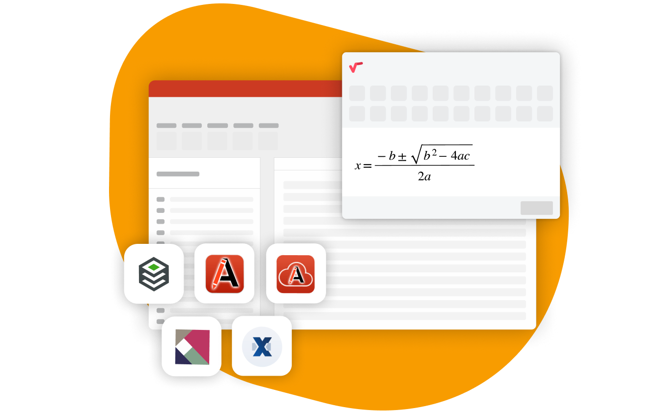 Controla completamente el aspecto de tus ecuaciones y la forma en que se exportan. Genera ecuaciones perfectamente renderizadas y de alta resolución en múltiples formatos como LaTeX, MathML, SVG, PDF, PNG y más. Tanto si necesita gráficos vectoriales escalables para la web como PDF listos para imprimir, MathType garantiza que tus matemáticas sean siempre profesionales.